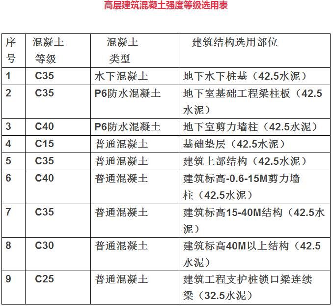 1混凝土強(qiáng)度等級(jí)選用范圍