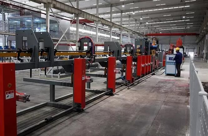 在項目建設初期,該公司引進國內(nèi)先進水平的PC生產(chǎn)流水線、全自動智能鋼筋加工線并開發(fā)智能混凝土攪拌站。PC流水線由自動清掃、噴油、劃線、邊模安裝、混凝土澆筑、趕平、預養(yǎng)護窯、抹光、養(yǎng)護、翻轉、沖洗等自動化設備組成,整個流水線各操作平臺由中央控室統(tǒng)一調(diào)度、控制,實現(xiàn)智能化、自動化生產(chǎn);鋼筋加工流水線是由全自動智能鋼筋桁架焊接機器人、全自動智能鋼筋彎箍機器人、全自動智能鋼筋柔性調(diào)直機器人、棒材鋼筋加工中心等鋼筋加工設備組成,可實現(xiàn)圖形輸入,數(shù)控加工;公司使用的混凝土攪拌站,是由徐工施維英有限公司設計、制造的符合公司生產(chǎn)實際需要的行業(yè)先進裝備,該設備擁有“一站式雙主機、立體料倉”的特點,可生產(chǎn)多品種混凝土,尤其具有同時生產(chǎn)兩種型號混凝土的功能。