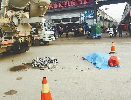 老人的遺體被藍(lán)色塑料布蓋著,一邊還有一個(gè)紅色塑料袋,里面放著老人剛從集市買的棉衣和棉褲,事發(fā)現(xiàn)場附近立著兩個(gè)警示栓,攪拌車停在遺體旁邊,司機(jī)在車內(nèi)。此時(shí),在不遠(yuǎn)處集市上賣水果的,老人的小兒子已經(jīng)趕到現(xiàn)場,他情緒悲痛,正在配合民警做調(diào)查。