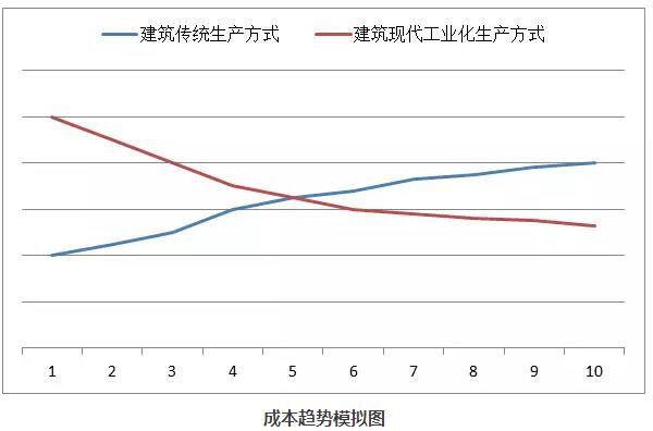 傳統(tǒng)生產(chǎn)方式的成本上升與工業(yè)現(xiàn)代化生產(chǎn)方式的成本下降,這是不可扭轉(zhuǎn)的發(fā)展趨勢!兩者終將在某個(gè)時(shí)間點(diǎn)相遇,當(dāng)工業(yè)現(xiàn)代化生產(chǎn)方式下的成本低于傳統(tǒng)生產(chǎn)方式時(shí),也是建筑工業(yè)現(xiàn)代化生產(chǎn)方式大面積取代建筑傳統(tǒng)生產(chǎn)方式的時(shí)間點(diǎn)。
