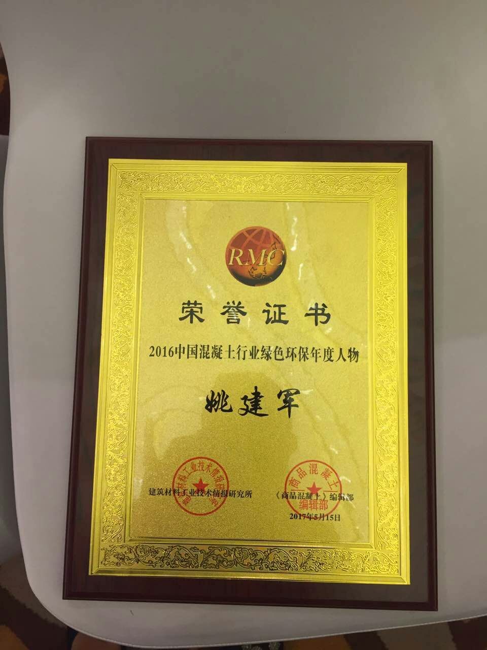 會(huì)議上,同時(shí)也公布了2016中國(guó)混凝土行業(yè)綠色環(huán)保年度人物,并由會(huì)議領(lǐng)導(dǎo)當(dāng)場(chǎng)頒發(fā)了獲獎(jiǎng)證書。