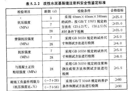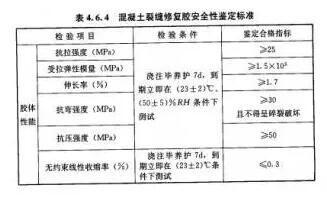 對(duì)于裂縫修補(bǔ)材料來說,其材料的安全性能指標(biāo),必須符合GB50728-2011《工程結(jié)構(gòu)加固材料安全性鑒定技術(shù)規(guī)范》的規(guī)定: