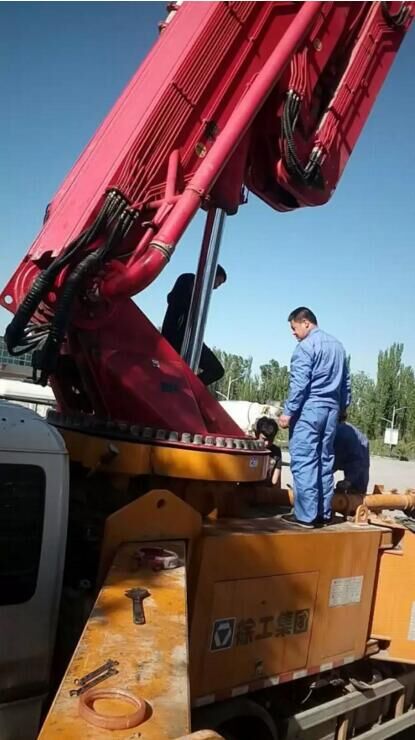 10、伸展布料桿應(yīng)按出廠說明書的順序進(jìn)行,布料桿升離支架后方可回轉(zhuǎn)。嚴(yán)禁用布料桿起吊或拖拉物件。