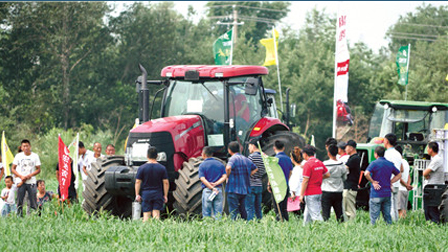 作為農(nóng)機(jī)行業(yè)知名品牌,凱斯為本次田間日準(zhǔn)備了專為國內(nèi)用戶設(shè)計(jì)、在玉米和小麥?zhǔn)斋@均有較好表現(xiàn)的軸流滾筒聯(lián)合收割機(jī)及用戶聯(lián)合整地和耕整地作業(yè)的大馬力拖拉機(jī),為當(dāng)?shù)赜脩魩韯?dòng)力機(jī)械及收獲機(jī)械選擇。據(jù)介紹,該公司軸流滾筒聯(lián)合收割機(jī)突破了傳統(tǒng)收割機(jī)只能收獲單一作物的局限,通過更換不同的部件,配置相應(yīng)的割臺,可以收割玉米、小麥、水稻、大豆、油菜等多種作物。而拖拉機(jī)能實(shí)現(xiàn)不同作業(yè)條件下自動(dòng)調(diào)節(jié)檔位,既適用于深松、犁地、聯(lián)合整地等重負(fù)荷作業(yè),又可進(jìn)行播種、中耕、噴藥等輕負(fù)荷作業(yè)。