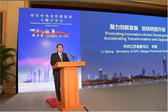 8月31日,中共中央對(duì)外聯(lián)絡(luò)部在京舉行“中國(guó)共產(chǎn)黨的故事:江蘇省委的實(shí)踐——?jiǎng)?chuàng)新驅(qū)動(dòng)、轉(zhuǎn)型發(fā)展”專題宣介會(huì),邀請(qǐng)中共江蘇省委向訪華的外國(guó)政黨政要、駐華使館高級(jí)外交官、外國(guó)商會(huì)、跨國(guó)公司駐華代表等,宣介習(xí)近平總書(shū)記治國(guó)理政新理念新思想新戰(zhàn)略在江蘇的貫徹落實(shí)情況,展示江蘇省委落實(shí)習(xí)近平總書(shū)記重要指示精神,在創(chuàng)新驅(qū)動(dòng)轉(zhuǎn)型發(fā)展生動(dòng)實(shí)踐中的突出成效和經(jīng)驗(yàn)做法。