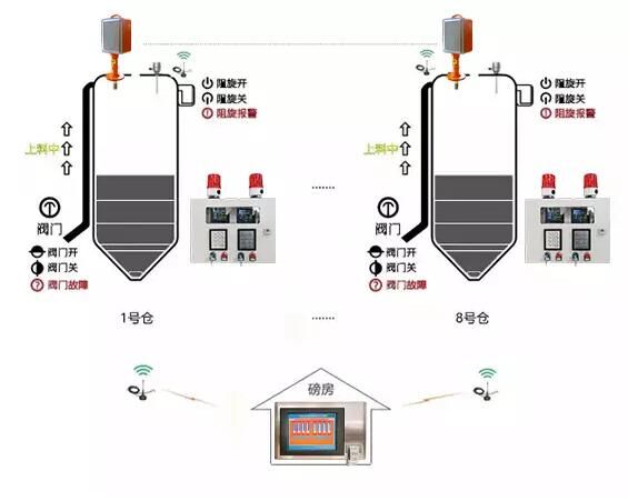 終端集成了料位報警功能,實現(xiàn)了一對一的料位報警;