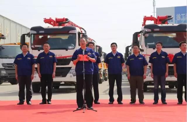 半年時(shí)間內(nèi),這已是徐工施維英第7次出口訂單批量發(fā)車儀式。儀式現(xiàn)場人頭攢動(dòng)、彩旗飄揚(yáng)、禮炮齊鳴, 一臺(tái)臺(tái)披戴紅花的混凝土機(jī)械設(shè)備就像即將出征的戰(zhàn)士,整齊列隊(duì),等待出征前的檢閱。