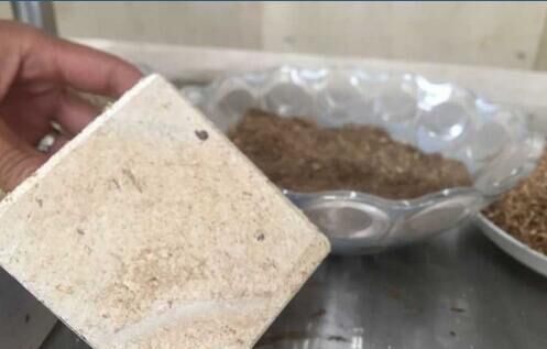 上生產(chǎn)出來(lái)的鋼鈣秸稈實(shí)心墻板已擺放得整整齊齊。“這些機(jī)器‘吃’進(jìn)去的是秸稈,‘吐’出來(lái)的是墻板,正適合當(dāng)作建筑外墻屋面材料。”該公司經(jīng)理文華銀拿出了一塊墻板樣品,側(cè)切面能清晰地看到秸稈碎屑。盡管摸上去第一感覺(jué)像木頭,但用手使勁兒敲打卻能感受到足夠的硬度,“每平米墻板所含的秸稈能達(dá)到60%至80%?!?