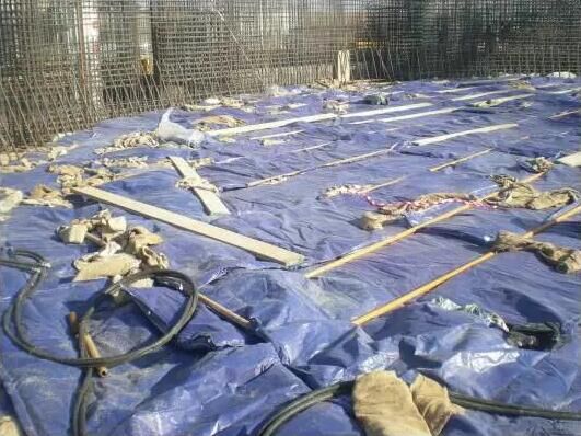 頂板、梁混凝土上部保溫為在新澆筑的混凝土表面先覆蓋塑料布再覆蓋一層草墊。對于邊角等薄弱部位或迎風(fēng)面應(yīng)加蓋草墊并做好搭接。如室外日平均氣溫在0℃及0℃以下采取在澆制的混凝土表面蓋一層塑料膜,以防稻草等覆蓋物受潮,再在混凝土周圍蓋上稻草,最后在坑口上蓋一層塑料以增強(qiáng)保溫性,來保證混凝土的質(zhì)量?;炷恋娜肽囟瓤刂圃?℃以上;混凝土澆筑后的起始養(yǎng)護(hù)溫度不低于5℃,若達(dá)不到以上溫度,則要提高養(yǎng)護(hù)水溫以滿足要求。