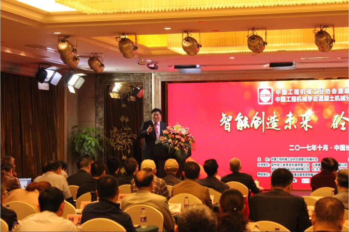符忠軒會(huì)長(zhǎng)主持會(huì)議并做主題《開(kāi)放包容,共享共榮,開(kāi)創(chuàng)中國(guó)混凝土機(jī)械行業(yè)合作共贏新局面》發(fā)言