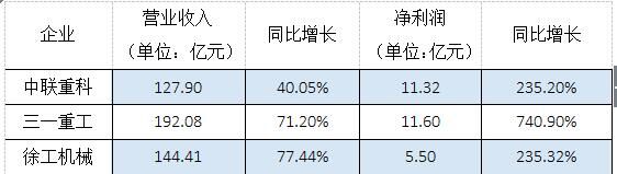 表現(xiàn)在財(cái)務(wù)上,毛利率水平得到了極大的改觀!以中聯(lián)重科、三一重工、徐工機(jī)械三家上市公司上半年財(cái)報(bào)數(shù)據(jù)喜人。