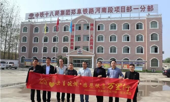 回訪團(tuán)隊(duì)一行實(shí)地走訪了中鐵十八局鄭阜鐵路沿線攪拌站,與一線操作管理人員細(xì)致交流,了解設(shè)備運(yùn)行情況,服務(wù)工程師尹賓對(duì)攪拌站進(jìn)行了維護(hù)檢查。