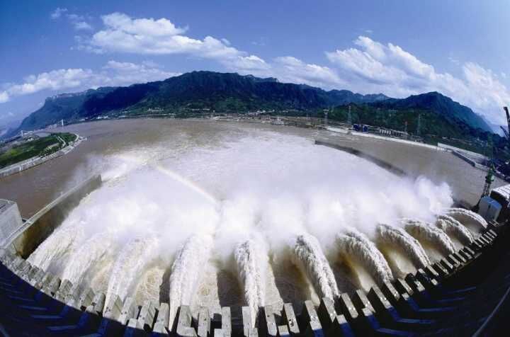 三峽大壩工程泄洪全景