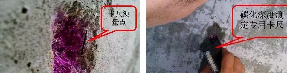 碳化會增大混凝土表面硬度,所以回彈判定其強度時需要檢測碳化深度(一般混凝土碳化深度可用碳化深度測量儀,碳化深度尺等進行測定。回彈值測量完畢后,應(yīng)選擇不少于構(gòu)件的30%測區(qū)數(shù)在有代表性的位置上測量碳化深度值。)進行修正。