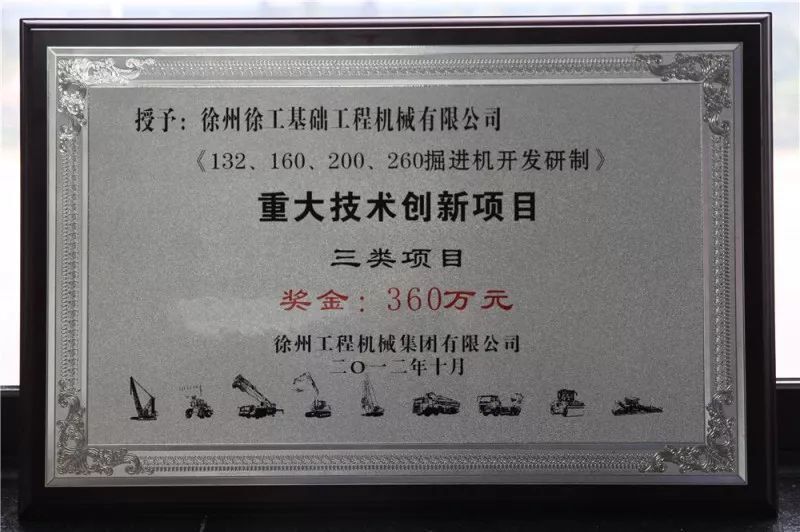 2011年,當年9月,徐工基礎(chǔ)推出首臺具有自主知識產(chǎn)權(quán)的EBZ160掘進機,其成功研制填補了徐工在煤礦掘進機方面的空白,當年順利通過煤安認證、實現(xiàn)銷售;2012年10月,EBZ135、160、200、260系列掘進機被授予徐工集團重大技術(shù)創(chuàng)新項目,獲得獎金360萬元。