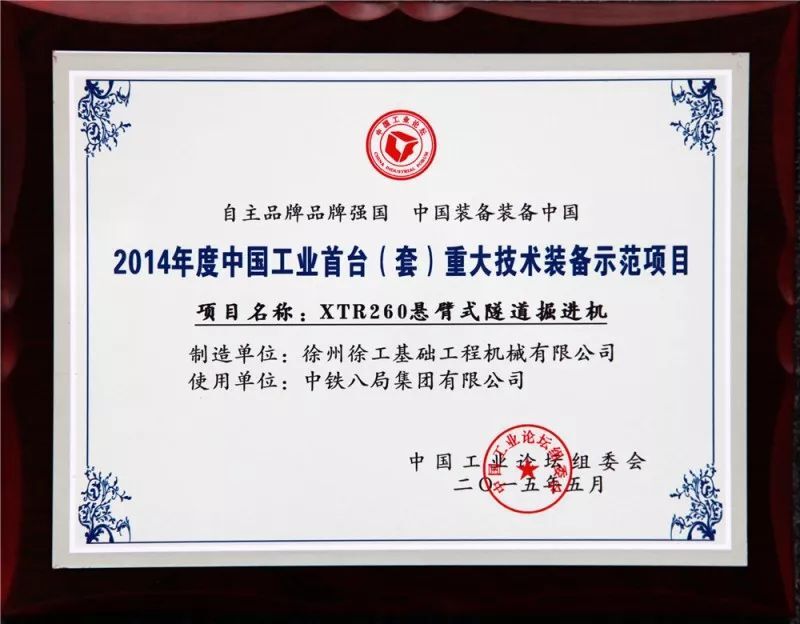 2014年6月,國內(nèi)首臺懸臂式隧道掘進機徐工XTR260研制成功,在大連等地進行隧道施工,有效提升了隧道施工質(zhì)量和效益,促進國內(nèi)隧道施工模式的轉(zhuǎn)變,填補國內(nèi)懸臂式隧道掘進機的空白;經(jīng)中國機械工業(yè)聯(lián)合會組織鑒定,其主要技術(shù)性能達到國際領(lǐng)先水平,該設(shè)備獲得江蘇省首臺套重大裝備認定和資金支持,為2014年度中國工業(yè)首臺(套)重大技術(shù)裝備示范項目。