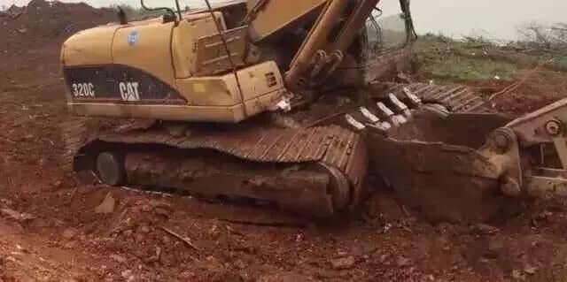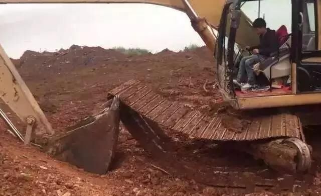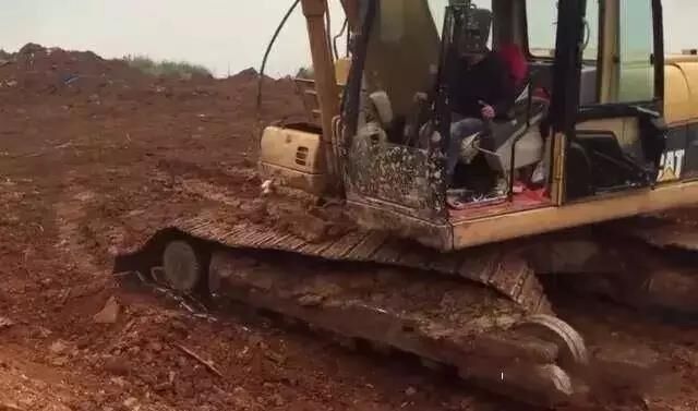 把機(jī)身轉(zhuǎn)向左邊,再次用挖機(jī)把履帶給搞起