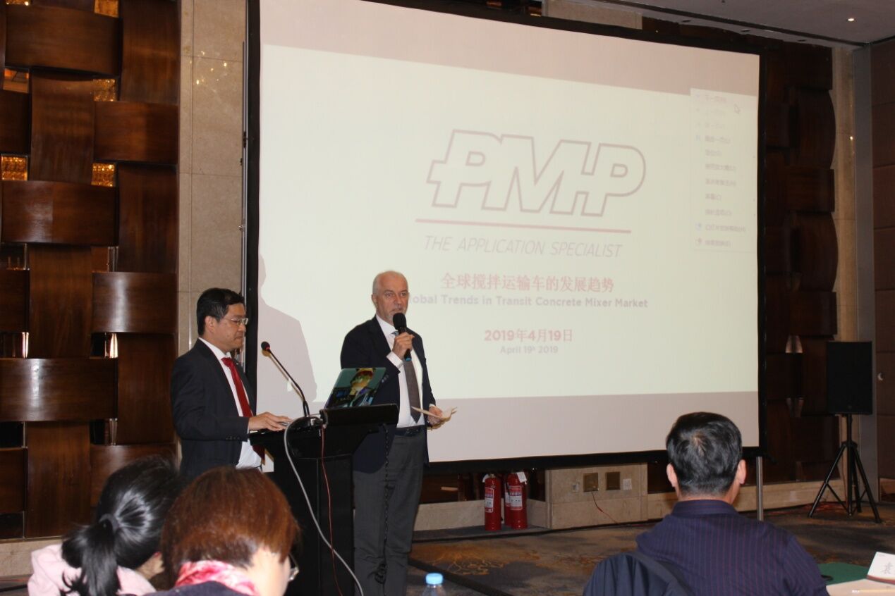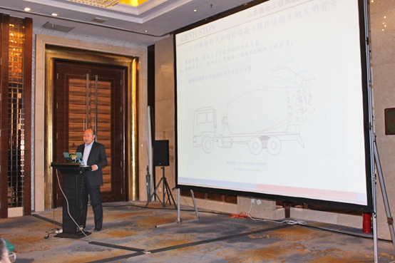 意大利普曼普(PMP)董事長Luigino POZZO先生作了《全球攪拌運輸車的發(fā)展趨勢》的主題報告,Luigino POZZO先生詳細闡述了歐洲攪拌車在以下四方面的技術(shù)發(fā)展趨勢。一是安全性(Safety),二是對環(huán)境的影響(Environmental impact),三是攪拌(混凝土)質(zhì)量(Quality of mixing),四是操作員舒適性(Ergonomics/Operatorcomfort),并提出歐洲大攪拌運輸車(超過10立方)是意大利和北歐(荷蘭)市場的主流型號,并已證實可以提高混凝土運輸?shù)男剩怯迷敿毦唧w的對比數(shù)據(jù)闡述了這一結(jié)論。Luigino POZZO先生對國外攪拌運輸車的發(fā)展趨勢的闡述給這次研討會提供了寶貴的意見。