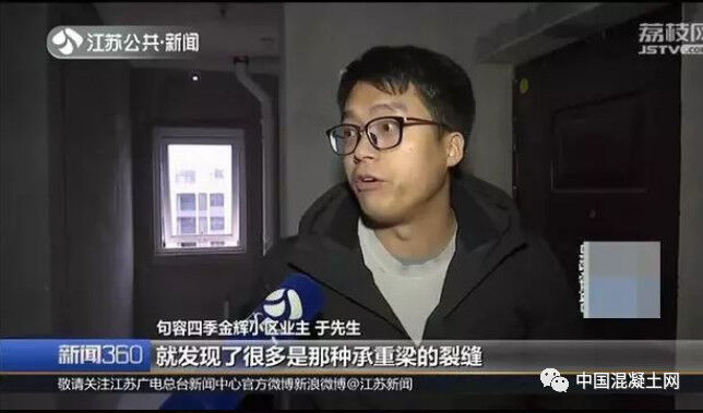 句容市建設(shè)工程質(zhì)量監(jiān)督站工程監(jiān)督二科科長黃躍福:這部分是框架剪力墻的裂縫,是混凝土結(jié)構(gòu)的嚴(yán)重質(zhì)量缺陷。