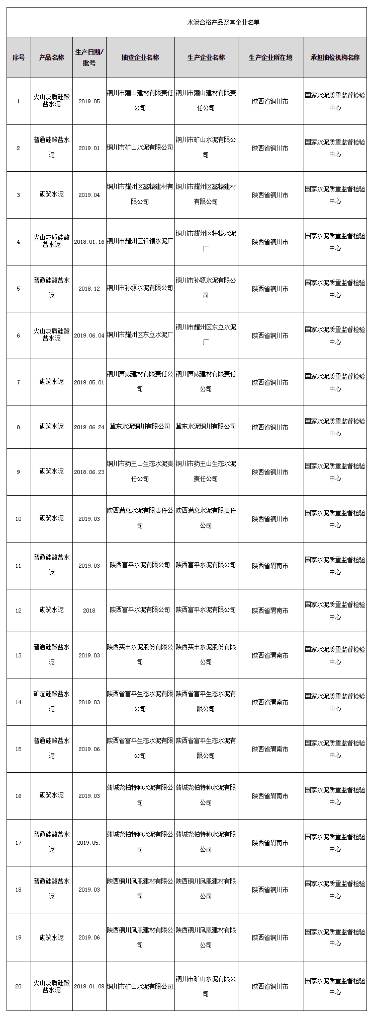 2020年3月31日,陜西省市場監(jiān)督管理局網(wǎng)站公布水泥產(chǎn)品質(zhì)量監(jiān)督抽查結(jié)果。此次水泥產(chǎn)品在銅川、渭南等地的生產(chǎn)領(lǐng)域中抽取,共抽查生產(chǎn)企業(yè)15家,抽取樣品20批次,經(jīng)檢驗,合格樣品20批次。