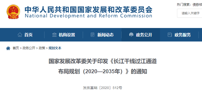 ??《長江干線過江通道布局規(guī)劃(2020—2035年)》(以下簡稱《規(guī)劃》)業(yè)經(jīng)國務(wù)院批準(zhǔn),現(xiàn)印發(fā)給你們,請按照執(zhí)行,并就有關(guān)事項通知如下:
