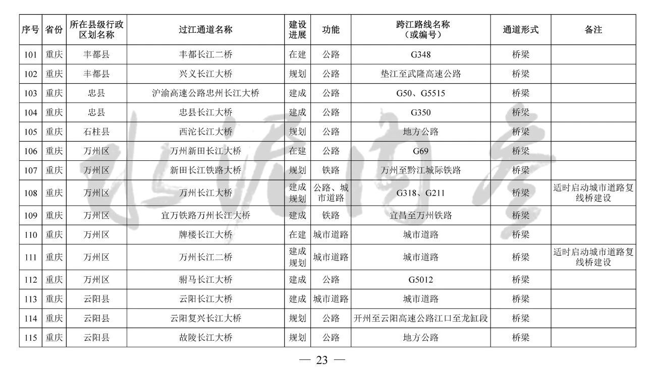??四、本《規(guī)劃》主要布局橫跨長江干線主要航道、具有交通功能的過江通道項目,對于連接洲島與沿岸、洲島之間的通道項目和不具備交通功能的跨江、沿江建筑物,由省級發(fā)展改革委統(tǒng)籌布局編制相關(guān)規(guī)劃報送我委銜接后組織實施。