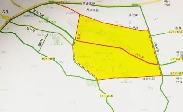 橫店鎮(zhèn)區(qū):東仙線—影視大道—長(zhǎng)征路—古民居路—九龍路—都督路—華夏大道—萬盛街形成的合圍區(qū)域。
