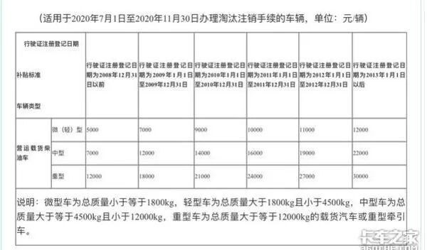 浙江省麗水市的國三淘汰補(bǔ)貼分為兩個(gè)階段,以7月1日為分界線,2020年6月30日之前淘汰國三柴油貨車最高可拿到3.7萬元補(bǔ)貼;7月1日至11月30日,最高可享受補(bǔ)貼3萬元。