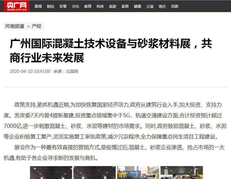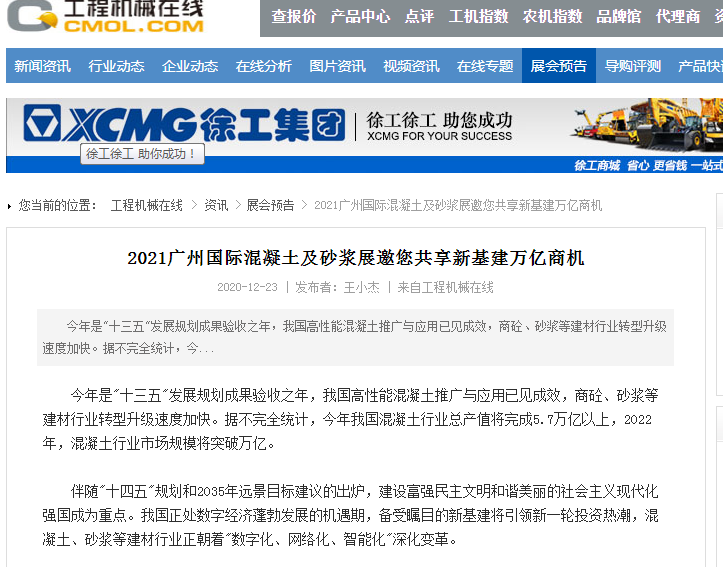 在此,小編就不一一列舉了,再次衷心感謝各大媒體對2021廣州國際混凝土及砂漿展的大力宣傳,為各地的混凝土、砂漿產(chǎn)品、設(shè)備代理商、經(jīng)銷商、承包商、進(jìn)出口貿(mào)易商等業(yè)內(nèi)人士等提供全面了解展會的平臺!