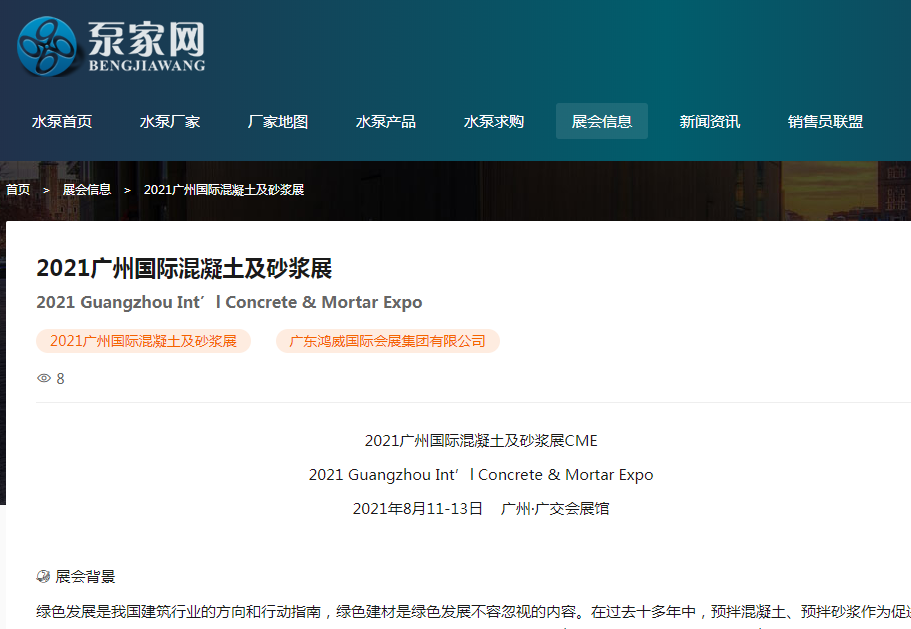 為促進(jìn)混凝土、砂漿行業(yè)健康有序發(fā)展,促進(jìn)建材、建機(jī)行業(yè)同仁互動交流,由廣東砂石協(xié)會、廣州市混凝土行業(yè)協(xié)會、廣東鴻威國際會展集團(tuán)有限公司共同主辦的“2021廣州國際混凝土及砂漿展”將在廣交會展館A區(qū)舉辦,于8月11日-13日盛大開幕。展會以“數(shù)智商砼·砼心智造”為主題,力邀全球各地區(qū)行業(yè)協(xié)會、專家顧問、企業(yè)精英代表共同出席探討行業(yè)發(fā)展,構(gòu)建行業(yè)全產(chǎn)業(yè)鏈發(fā)展矩陣,搭建行業(yè)全產(chǎn)業(yè)鏈交流合作平臺,助力中國混凝土及砂漿產(chǎn)業(yè)健康有序發(fā)展。