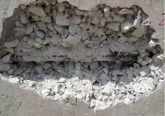 ②較大蜂窩,鑿去薄弱松散顆粒,洗凈后支模,用高一強度等級的細石混凝土仔細填塞搗實;