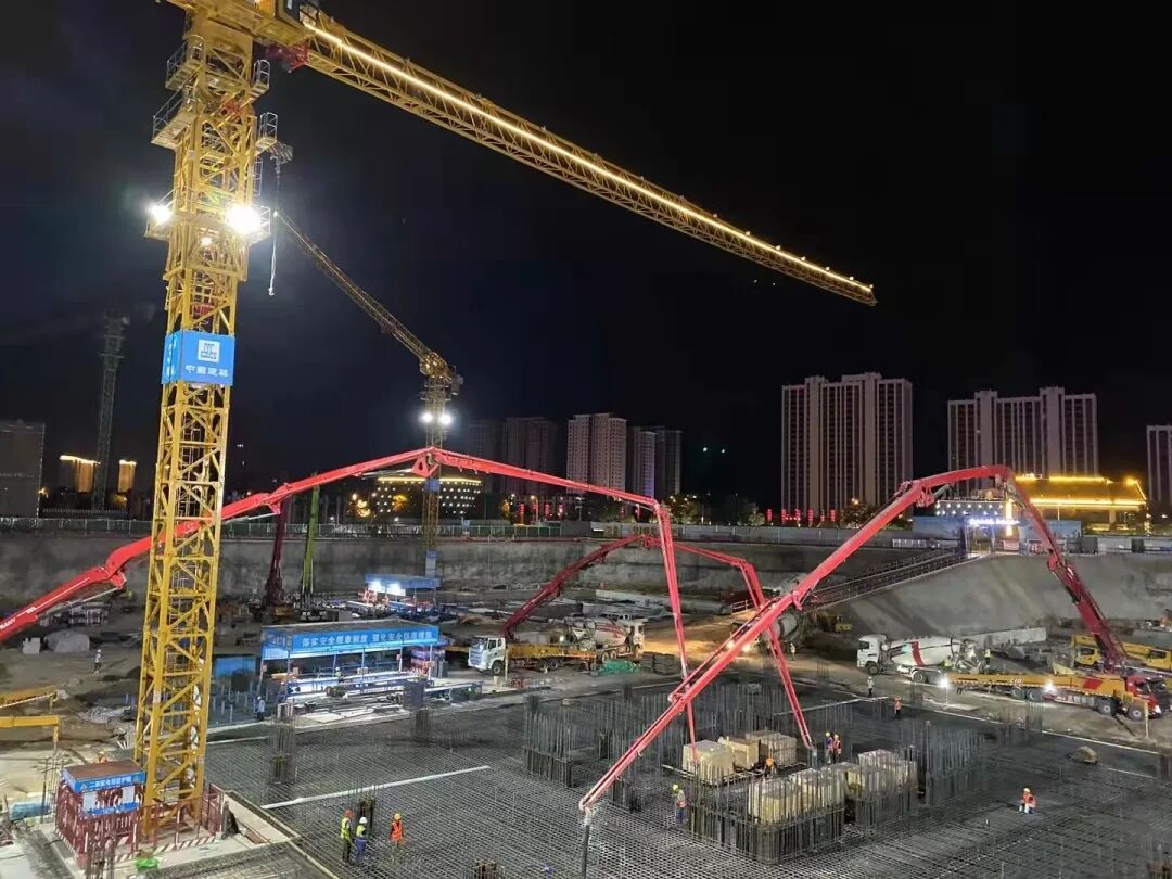 天水中深財富中心項目2號樓、3號樓超高層大體積筏板基礎(chǔ)在8月18日完成澆筑4300m3,9月4日完成澆筑5700m3,共計10000m3混凝土順利澆筑完成。