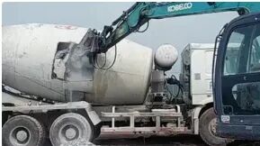 人進(jìn)到攪拌車罐內(nèi)用風(fēng)鎬清理,工作既辛苦又危險(xiǎn)。要么就要切割罐體,費(fèi)時(shí)費(fèi)力也費(fèi)財(cái),所以很多司機(jī)就自己找個(gè)地方把混凝土倒掉。