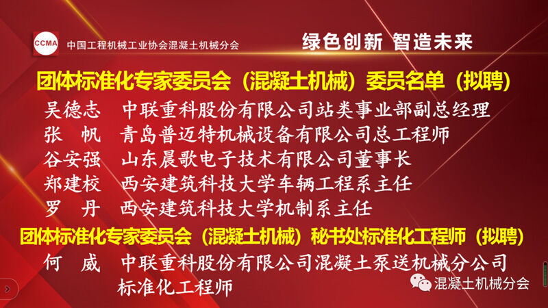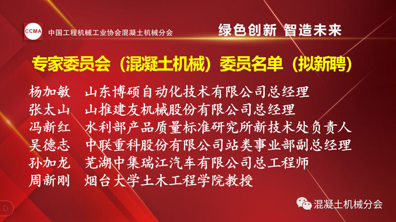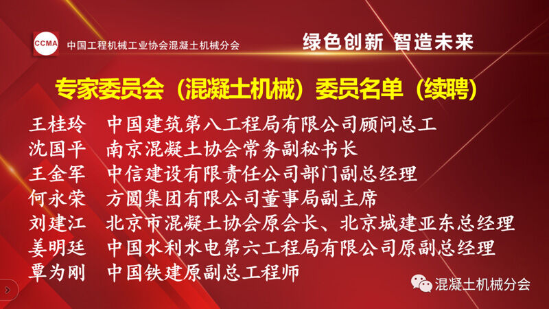 中國工程機械工業(yè)協(xié)會混凝土機械分會會長符忠軒宣讀兩份通知。一份為《關(guān)于2022年中國工程機械工業(yè)協(xié)會專家委員會(混凝土機械)委員聘任的通知》,其中中國工程機械工業(yè)協(xié)會專家(混凝土機械)委員會(混凝土機械)續(xù)聘7位,新聘6位委員,共13位。