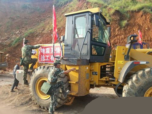 趕到災區(qū)的徐工救援隊指揮徐楠聯(lián)系上當?shù)卣筒筷牐谵k理好登記等相關(guān)手續(xù)后,積極請戰(zhàn)要求分派任務(wù),主動要求到最困難和最需設(shè)備的地方。中國武警部隊第三總隊領(lǐng)導經(jīng)過現(xiàn)場開會部署,決定臨時征用徐工一臺裝載機加入武警救援部隊。