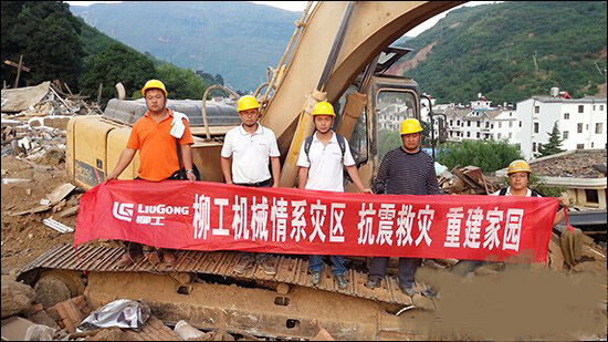 柳工機械在云南魯?shù)橹貫?zāi)區(qū)開挖生命通道