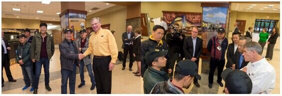 美國中部時間11月11日上午,Cat鋼鐵英雄爭霸賽盟主一行抵達卡特彼勒公司坐落于奧羅拉市的Cat裝載機工廠,展開為期兩天的卡特彼勒公司參觀訪問。隨后,盟主們輾轉(zhuǎn)皮奧里亞市,重溫卡特彼勒百年輝煌之路,訪問了生產(chǎn)推土機的卡特彼勒東皮奧里亞工廠和卡特彼勒的訪客中心,并在美國中部時間12日下午抵達愛德華茲演示與學(xué)習(xí)中心,通過遙控駕駛體驗了Cat D11T大型推土機。傍晚時分,卡特彼勒董事長兼首席執(zhí)行官道格拉斯?歐博赫曼與其他公司全球高層熱烈歡迎各位盟主的到來,并認(rèn)真傾聽了他們對Cat產(chǎn)品設(shè)備的訴求。