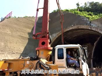2012年,在京??蛯P藿ù蠼Y(jié)大橋時(shí),施工現(xiàn)場(chǎng)地勢(shì)險(xiǎn)峻,剛剛打好樁,暴雨突然來(lái)襲,如果不及時(shí)灌樁,在雨水的沖刷下,樁孔極有可能出現(xiàn)垮塌。 周軍臨危受命,冒著暴雨開著泵車沖向現(xiàn)場(chǎng)。但由于坡度太陡,加上地面濕滑,滿載混凝土的攪拌運(yùn)輸車嘗試多次,都沒(méi)能與泵車對(duì)接。看到這種情景,現(xiàn)場(chǎng)負(fù)責(zé)人像熱鍋上的螞蟻,急的團(tuán)團(tuán)轉(zhuǎn)。周軍憑借多年經(jīng)驗(yàn),想出了兩臺(tái)泵車“接力泵送”的方法。聽了周軍的建議,現(xiàn)場(chǎng)負(fù)責(zé)人火速調(diào)來(lái)另一臺(tái)租賃的泵車,兩臺(tái)泵車一上一下,一遞一接,變相的延長(zhǎng)了輸送管道,順利將混凝土送到了指定位置。