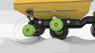 Centaur鉸接式卡車具備強(qiáng)大的裝載能力,其載重能力或?qū)⒊^40噸,巨大的輪胎和堅(jiān)固的底盤支撐起了這只龐然大物。Centaur鉸卡采用了非常獨(dú)特的懸掛設(shè)計(jì),6個輪胎分別獨(dú)立地與主軸連接,連接處可以自由轉(zhuǎn)動,這使得Centaur在坎坷不平的路面上如履平地。