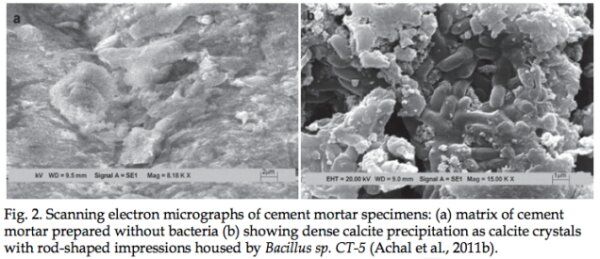 這些礦物質(zhì)和糖、蛋白質(zhì)分泌物一起形成一種高強(qiáng)膠水。幾年前,一些機(jī)智的科學(xué)家們一拍腦袋想到這些生物礦化微生物可能幫助我們打造更強(qiáng)、更耐腐蝕、甚至也許能自我愈合的混凝土。