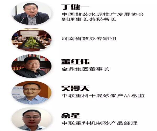 此次方案的參與實(shí)施者對(duì)有中國(guó)散裝水泥推廣發(fā)展協(xié)會(huì)副理事長(zhǎng)兼秘書長(zhǎng)丁健一;河南省散辦專家組;金鼎集團(tuán)董事長(zhǎng)董紅偉;中聯(lián)重科干混砂漿產(chǎn)品總監(jiān)吳漫天;中聯(lián)重科機(jī)制砂產(chǎn)品經(jīng)理余星
