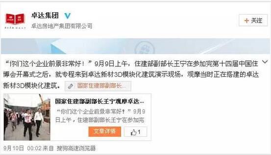 不過,從卓達的報道來看,卓達主要是用推廣自己3D模塊建房技術的噱頭吸引官方前來參觀,給他們“站臺”,卓達并不敢在官員們面前宣傳自己私下在進行的那些涉嫌“違法集資”的活動。