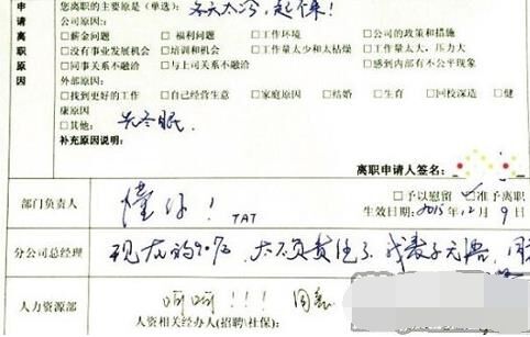 部門負責人回復:“懂你,TAT”;分公司總經理回復:“現(xiàn)在的90后,太不負責任了,我表示無語。同意”;人力資源部回復:“呵呵?。?!同意”。