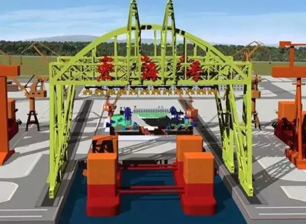 “宏?!碧?hào)22000噸起重機(jī),主要用于海上石油鉆井平臺(tái)整體的從陸地運(yùn)到海上,將以往“化整為零”的建造方式變?yōu)椤罢嬲 ?。借?2000噸起重能力的“大家伙”,把拼裝好的海洋油氣鉆井平臺(tái)從陸地上的專用拼裝胎位上提起來(lái),直接放到海上去。設(shè)備總體高度150米,提升高度最高為65米,相當(dāng)于把重量為500節(jié)高鐵車廂或20層樓高的超重、超大型物件提升起來(lái)并行走。主體采用桁架式結(jié)構(gòu)、拱形外觀、多吊點(diǎn)雙吊梁承載,跨度124.3米,宏海號(hào)總重14800噸,相當(dāng)于兩個(gè)埃菲爾鐵塔的重量?!伴_(kāi)下門(mén),快遞到了啊,你的鉆井平臺(tái)~”