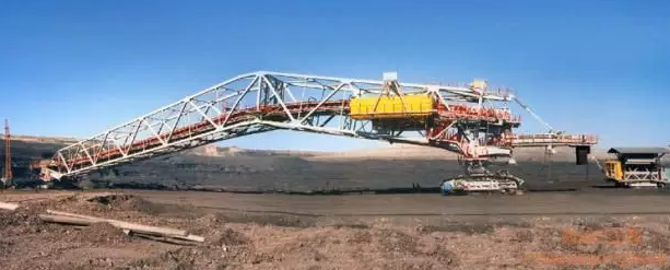 排土能力達(dá)到34000噸/小時(shí),臂長(zhǎng)超過(guò)120米。皮帶排土機(jī)為移動(dòng)式連續(xù)工作的排料設(shè)備,它們將來(lái)自可移動(dòng)梯段皮帶運(yùn)輸機(jī)的物料排卸在料堆上,借助皮帶轉(zhuǎn)載車和皮帶滑行轉(zhuǎn)載車將物料輸送到排土機(jī)。排土機(jī)有能力堆高低地、作為行駛路面的平盤(pán),以便隨后用做新采區(qū)的卸料、堆高。除此之外,還可以使用一部皮帶排土機(jī)為可移動(dòng)梯段皮帶運(yùn)輸機(jī)堆起一個(gè)高平面。說(shuō)白了,它就是一個(gè)堆土的設(shè)備嘍~