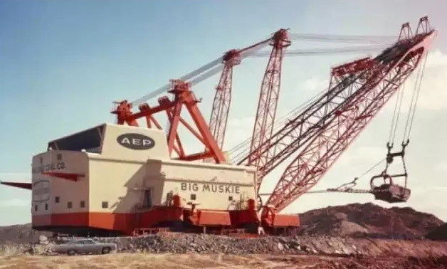 BIG MUSKIE官方編號(hào)為BE-4250W,是迄今最大的步進(jìn)式拉鏟,1967年B-E開(kāi)始為美國(guó)的一個(gè)露天煤礦建造它,直至1969年5月建成并投入使用,當(dāng)時(shí)的制造費(fèi)用為2500萬(wàn)美元,專門(mén)用于土石剝離。它有22層樓高,用13800V高壓電驅(qū)動(dòng),僅空鏟斗的重量就有209噸;1991年Big Muskie因礦區(qū)采空而停止運(yùn)行,1999年爆破拆解,僅鏟斗留存下來(lái)。有卡車對(duì)比圖哦~