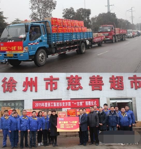近日,八輛大卡車滿載著徐工全體員工的捐款和衣物,緩緩駛?cè)胄熘菔猩鐣?huì)幫扶中心,送去徐工承擔(dān)的社會(huì)責(zé)任、徐工人的美德。2015年,在各單位的全力支持和全體員工暖暖愛(ài)心的捐助下,徐工集團(tuán)扶貧濟(jì)困“一日捐”活動(dòng)共收到捐款1382175.5元、捐衣物13830件,連續(xù)14年捐款捐物全市第一。