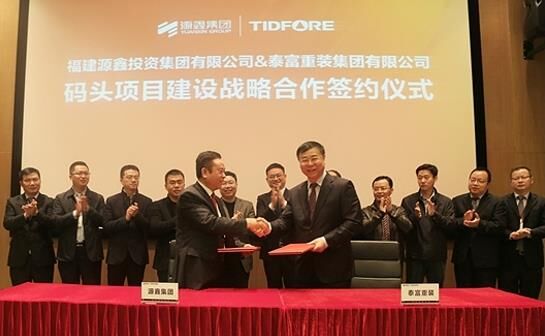 泰富重裝集團與福建源鑫投資集團在泰富湖南九華工業(yè)園簽署了碼頭項目建設(shè)戰(zhàn)略合作協(xié)議。泰富重裝集團董事長張勇、源鑫投資集團董事長陳必松分別代表雙方簽字,雙方企業(yè)高管、源鑫學(xué)院學(xué)員代表等百余位成員共同見證了這一重要時刻。