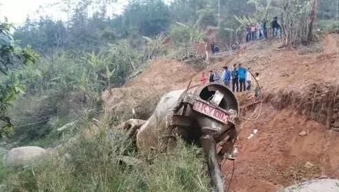 白石人劉某駕駛掛著桂K Y1093號牌的混凝土攪拌車,拉一車混凝土前往白雞村卸完混凝土后其駕車沿省道S370從白雞方向返回, 當(dāng)車輛行經(jīng)白雞村干河一下坡急轉(zhuǎn)彎路段時(shí)懷疑閃避2名學(xué)生,車輛失控翻下數(shù)十米深的溪澗中,當(dāng)?shù)匦l(wèi)生院、公安民警、消防接報(bào)先后趕到現(xiàn)場處置開展救援。