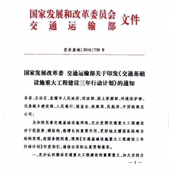 本文介紹國家發(fā)展和改革委員會交通運輸部公布的2016-2018年國家交通基礎(chǔ)設(shè)施重大工程推進項目,303個,總投資4.7萬億元!